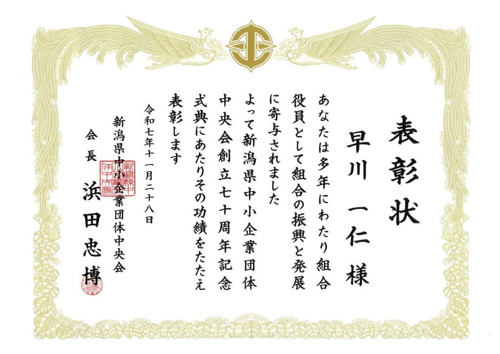 2025年 新潟県中小企業団体中央会から表彰をいただきました
